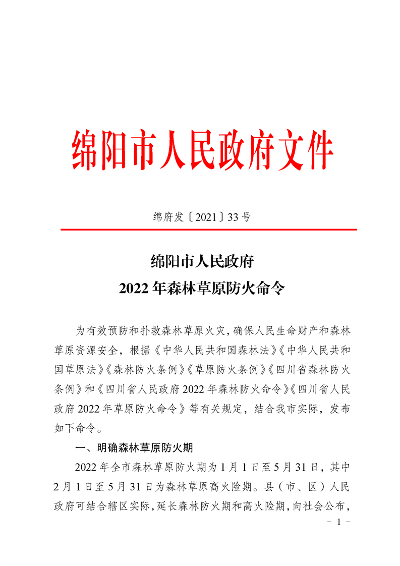 綿陽(yáng)市人民政府2022年森林草原防火命令
